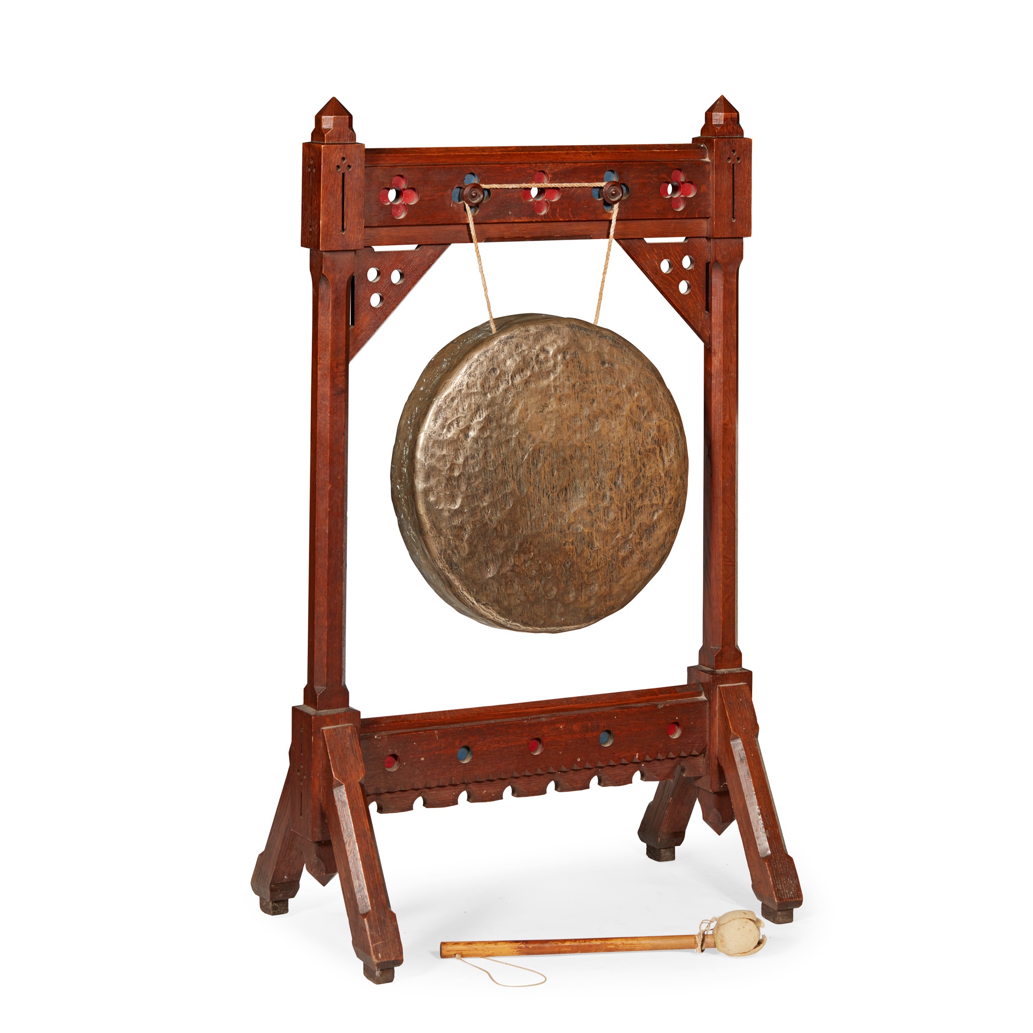 GOTHIC REVIVAL OAK AND POLYCHROMED DINNER GONG