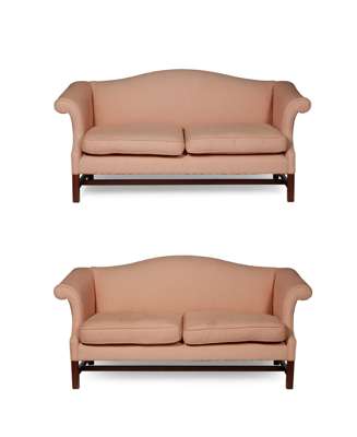 PAIR OF GEORGIAN STYLE CAMELBACK SOFAS