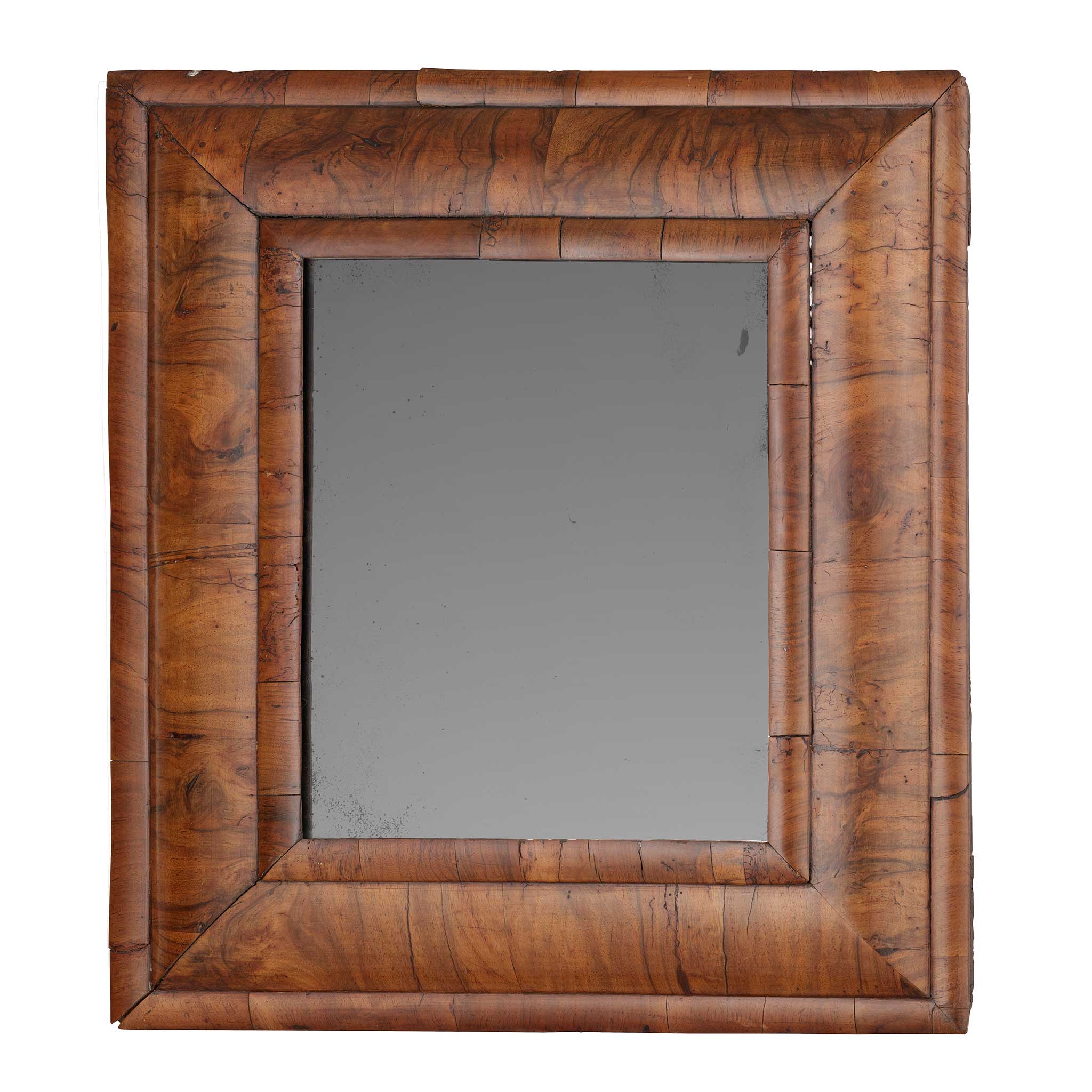 WILLIAM AND MARY CUSHION MOULDED WALNUT MIRROR