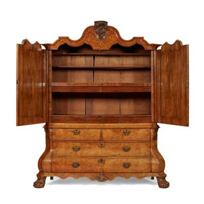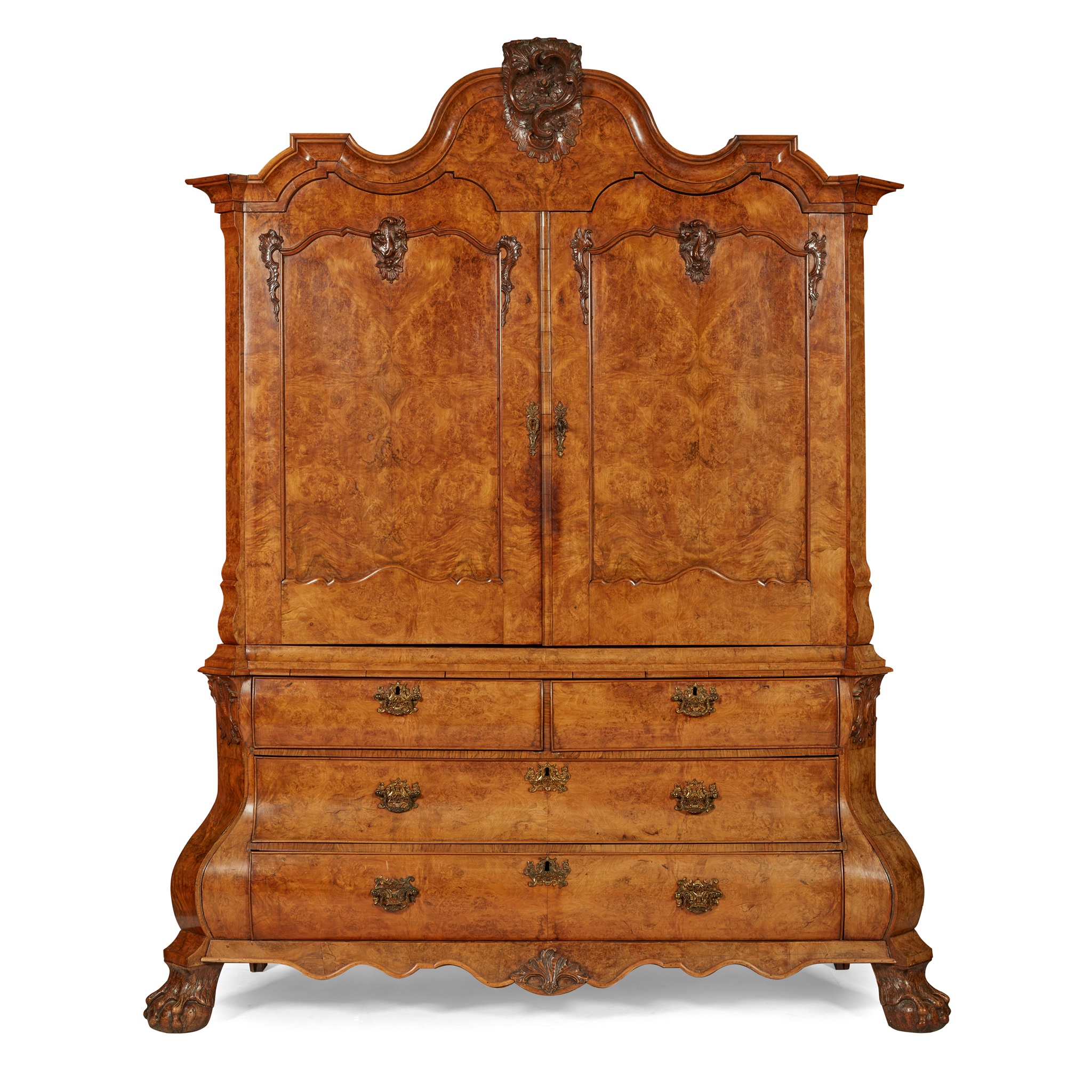 LARGE DUTCH ROCOCO WALNUT BOMBÉ CABINET ON CHEST