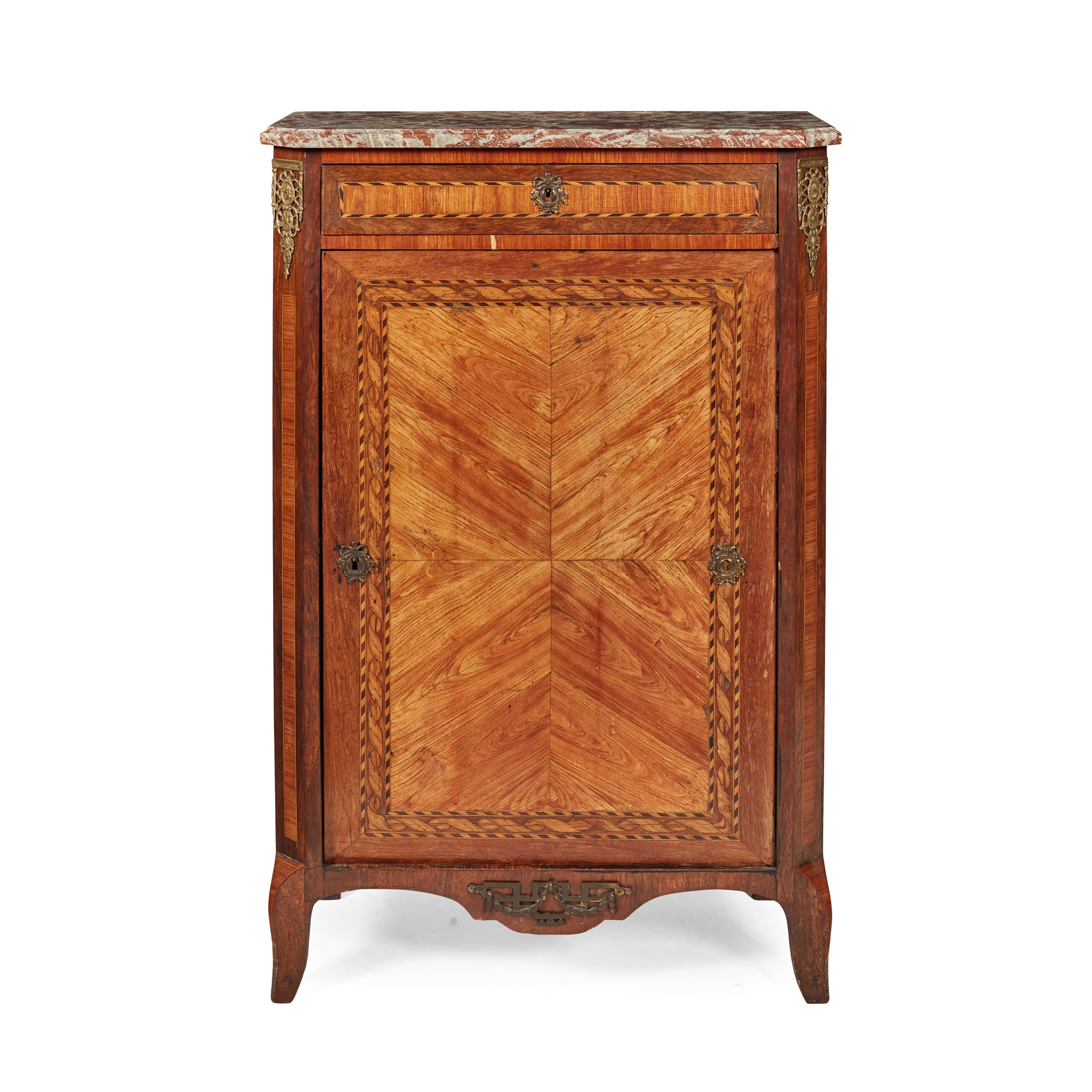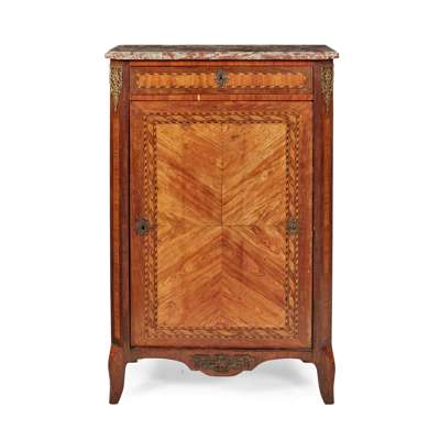DUTCH SMALL MARBLE TOPPED PARQUETRY SIDE CABINET