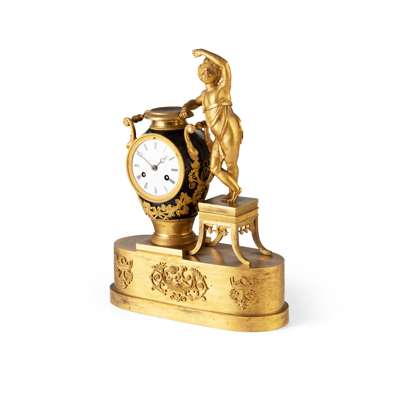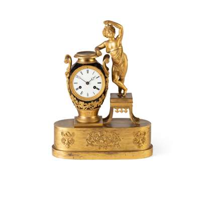FRENCH EMPIRE GILT AND PATINATED METAL FIGURAL MANTEL CLOCK