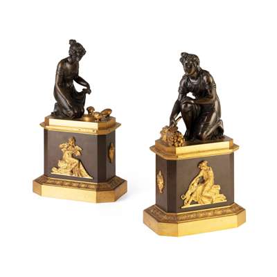 PAIR OF FRENCH EMPIRE GILT AND PATINATED METAL GARNITURE FIGURES