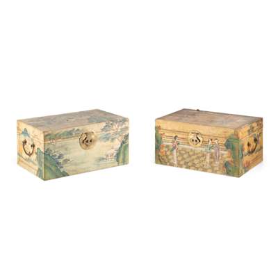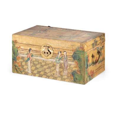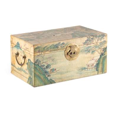 depicting figures in gardens and riverside landscapes, with brass handles and lock plates