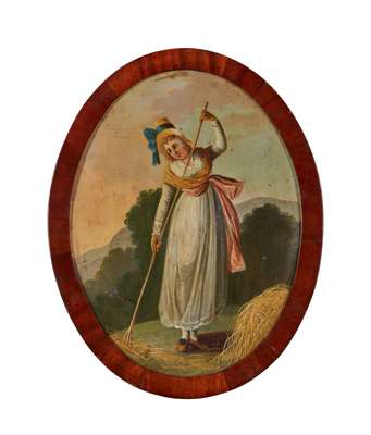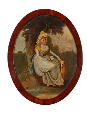 ENGLISH SCHOOL, PAIR OF PAINTED MAHOGANY OVAL PANELS