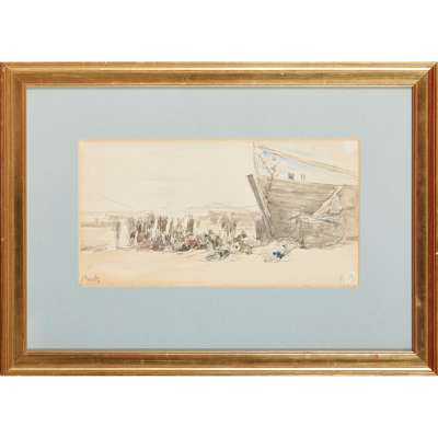Inscribed 'Berck' with the Trustee's stamp, pen, ink and watercolour