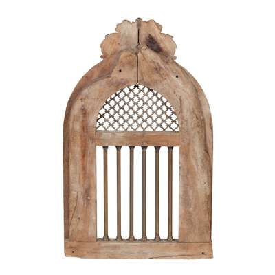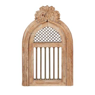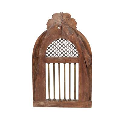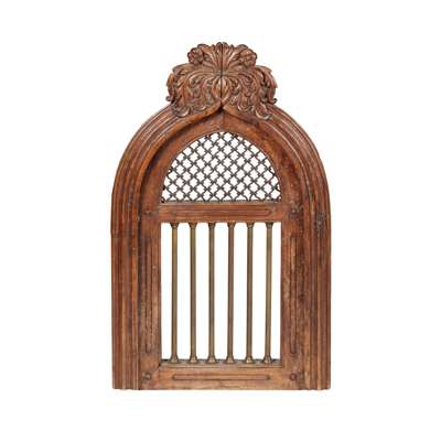 PAIR OF SPANISH CARVED FRUITWOOD AND IRON WINDOWS
