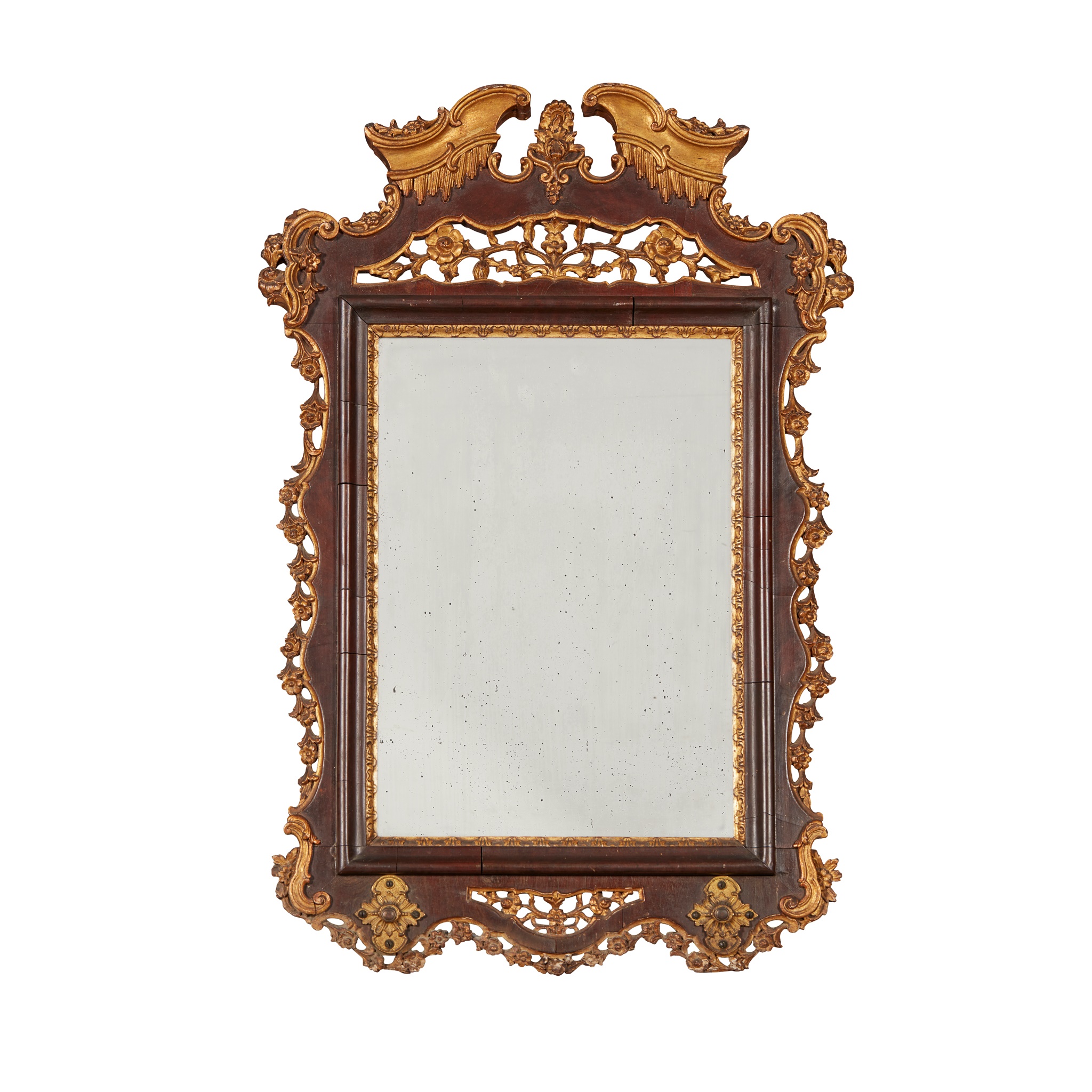PORTUGUESE PARCEL-GILT MAHOGANY MIRROR
