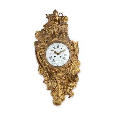 FRENCH ROCOCO STYLE GILT METAL CARTEL CLOCK