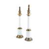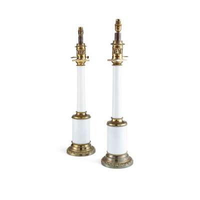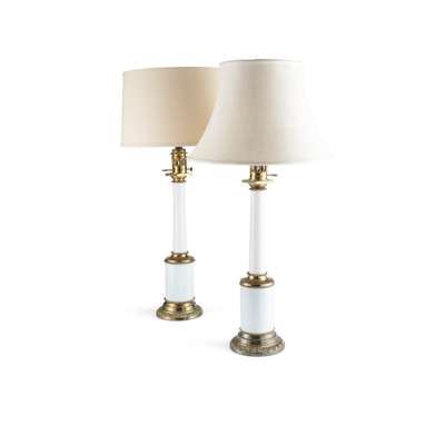 PAIR OF FRENCH OPALINE GLASS BRASS MOUNTED COLUMN LAMPS