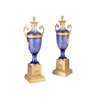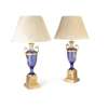 PAIR OF BOHEMIAN BLUE OVERLAY AND CUT GLASS ORMOLU MOUNTED LAMPS