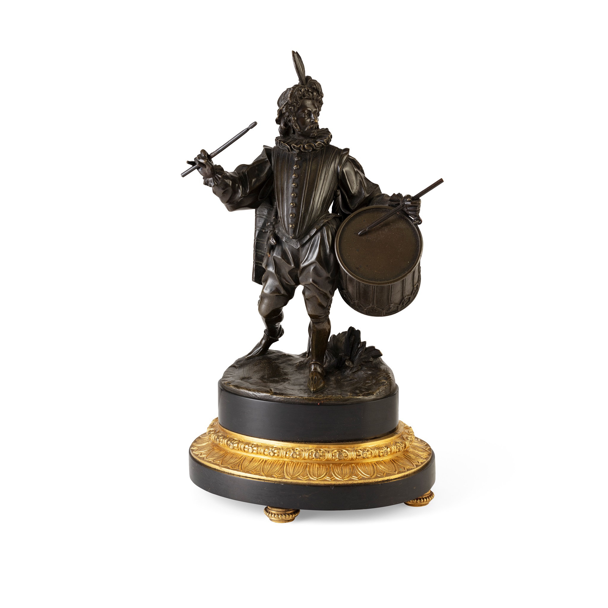 CONTINENTAL BRONZE FIGURE OF A LANDSKNECHT DRUMMER
