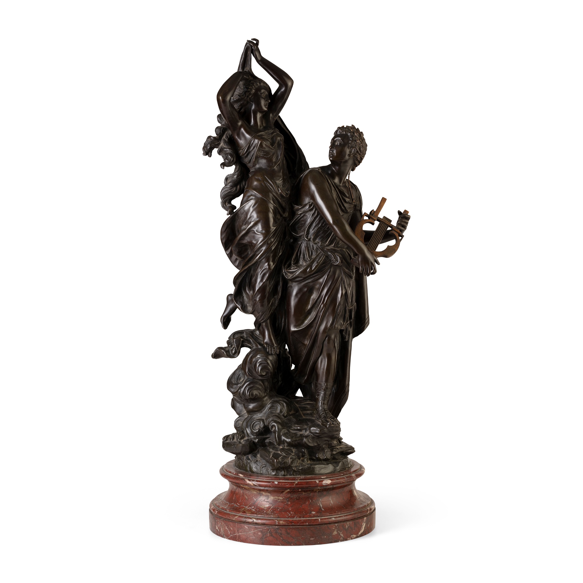 LARGE FRENCH BRONZE FIGURE GROUP, ORPHEUS AND EURYDICE