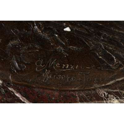 bronze, dark brown patina, signed in the bronze and inscribed 'A. Menzio & C/ Frisero - Torino'