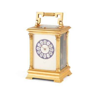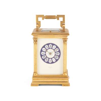 FRENCH BRASS AND ENAMEL REPEATER CARRIAGE CLOCK