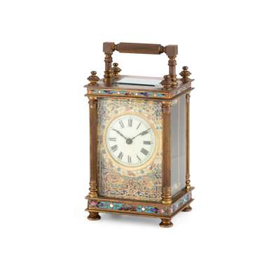 FRENCH CHAMPLEVÉ ENAMEL AND BRASS CARRIAGE CLOCK