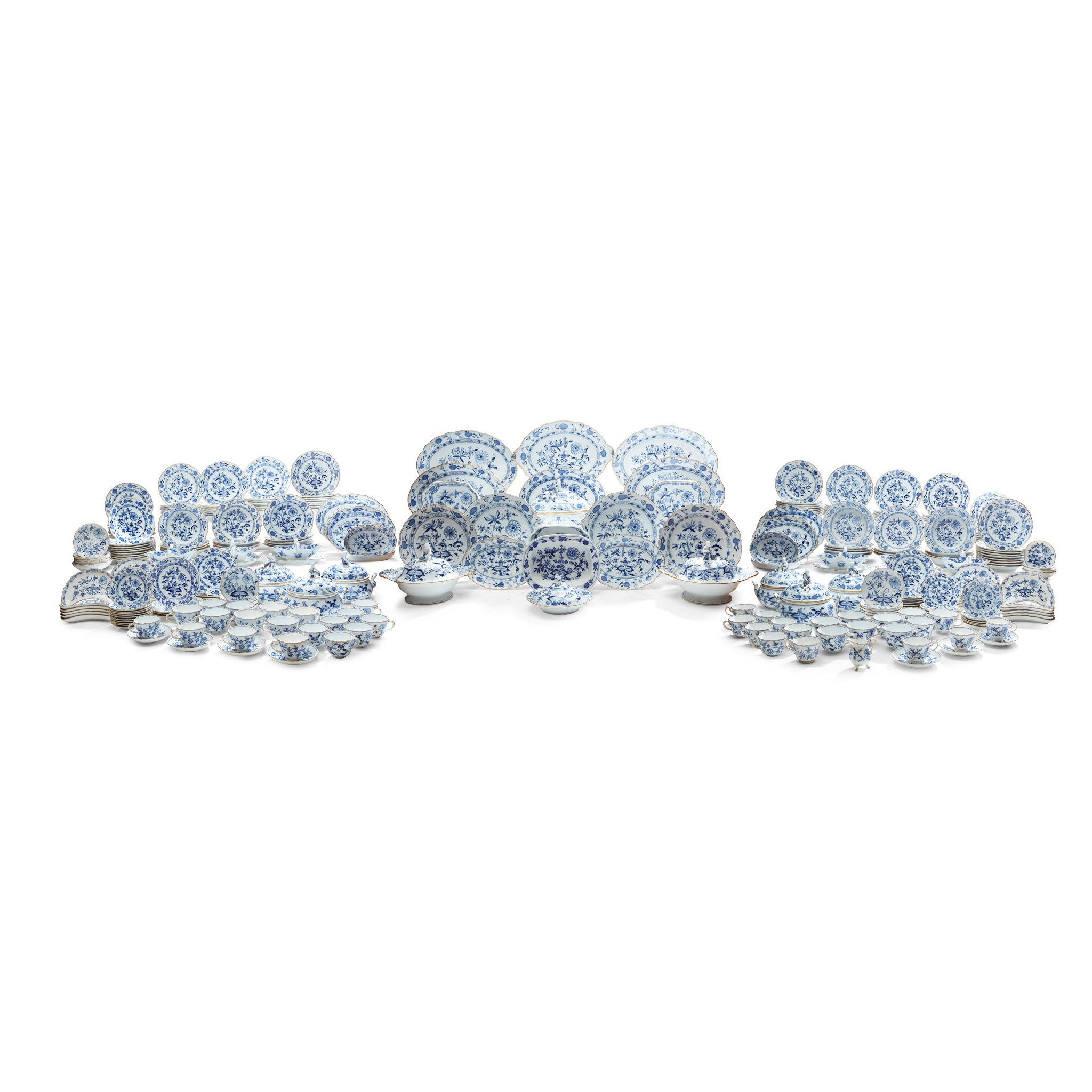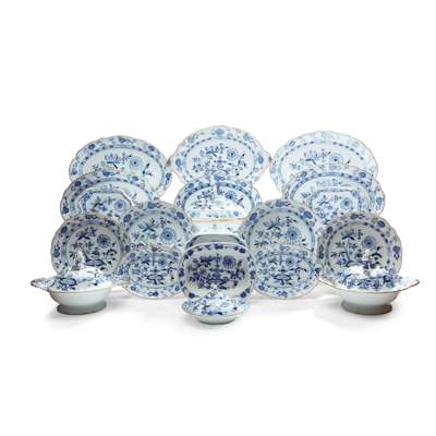 EXTENSIVE BLUE AND WHITE MEISSEN 'ONION' PATTERN DINNER SERVICE