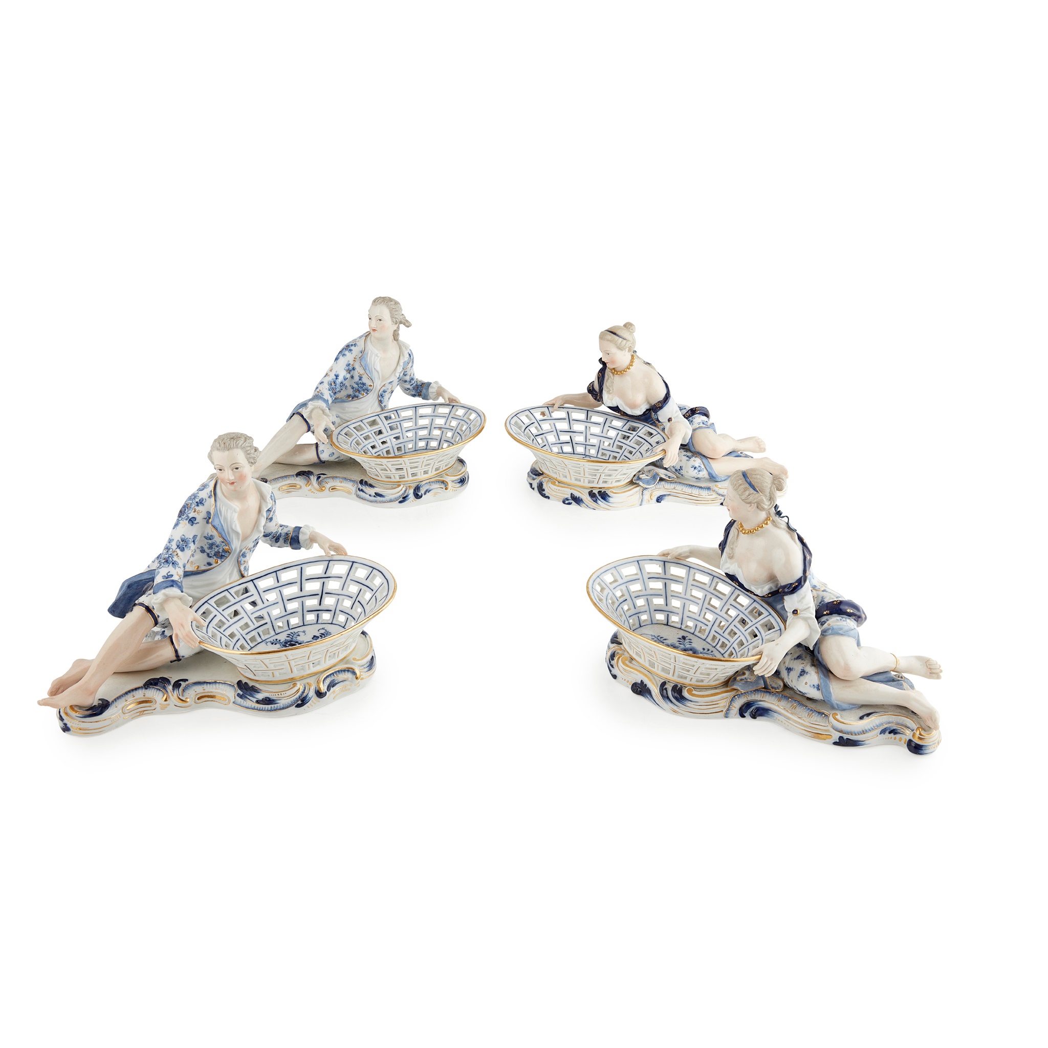 TWO PAIRS OF MEISSEN FIGURAL SWEET MEAT BASKETS IN THE 'ONION' PATTERN