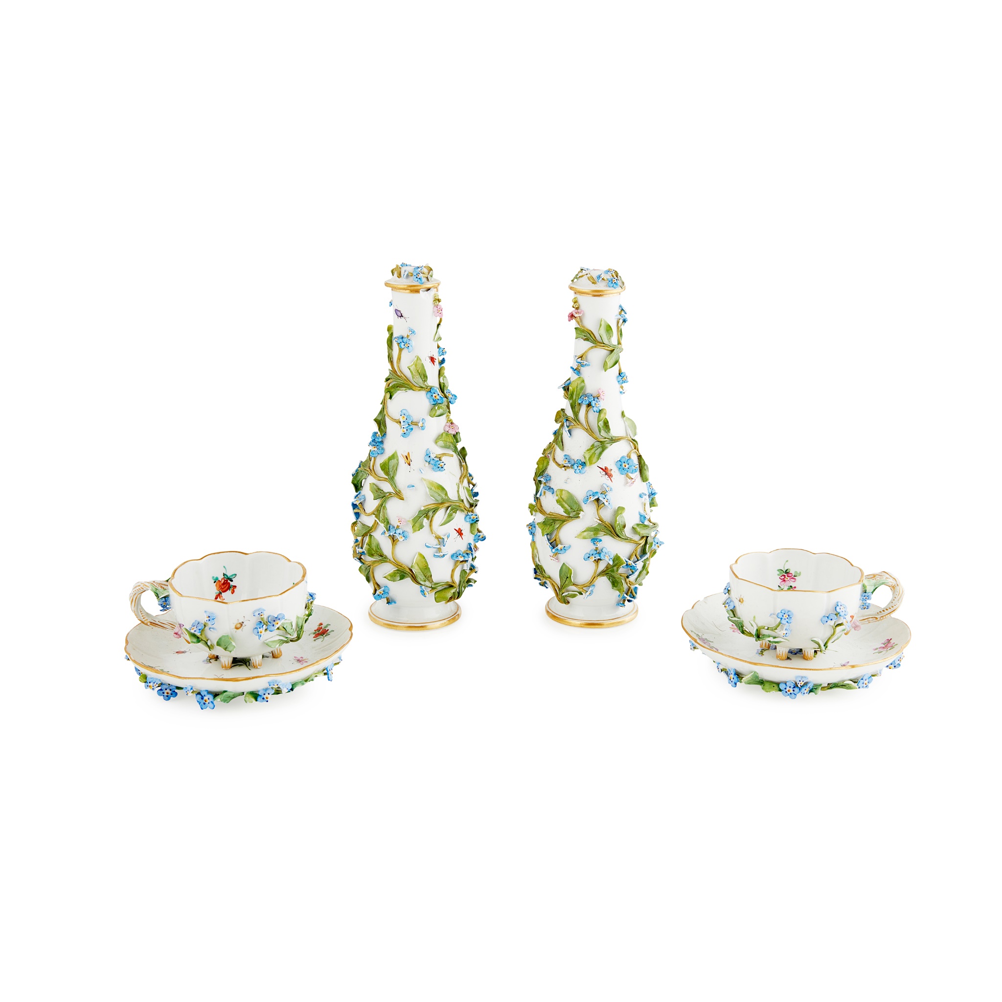 GROUP OF MEISSEN FLORAL PAINTED AND FOLIATE ENCRUSTED PORCELAIN