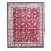 the red field with allover palmette and vine pattern, within cream palmette and floral lattice border