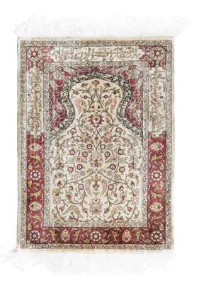 HEREKE SILK AND PART METAL THREAD PRAYER MAT