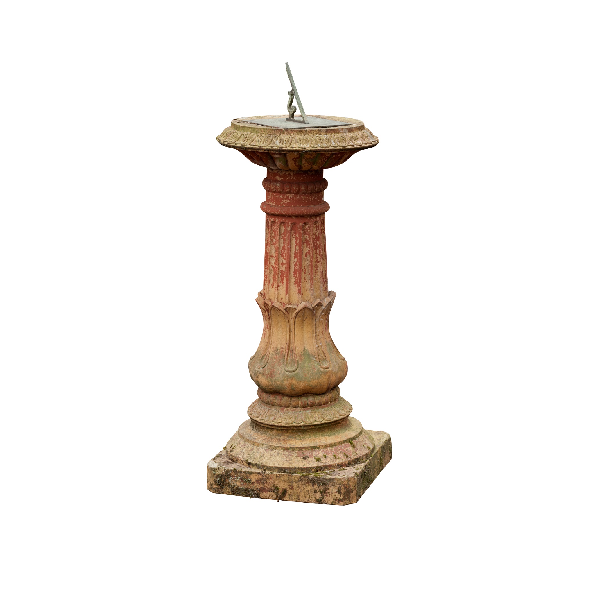 BRONZE SUNDIAL AND ASSOCIATED FIRECLAY PEDESTAL