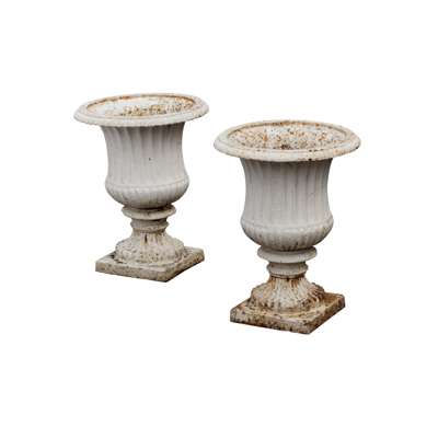 PAIR OF VICTORIAN PAINTED CAST IRON CAMPANA URNS