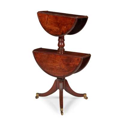 LATE GEORGE III DROP-LEAF TWO TIER MAHOGANY DUMBWAITER