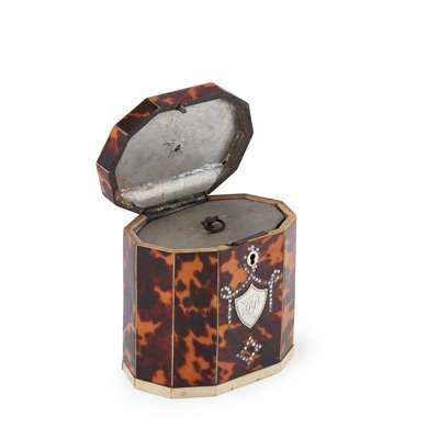 GEORGE III TORTOISESHELL AND IVORY DECAGONAL TEA CADDY Y