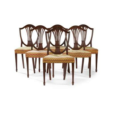 SET OF EIGHT GEORGIAN STYLE SHIELD-BACK MAHOGANY DINING CHAIRS