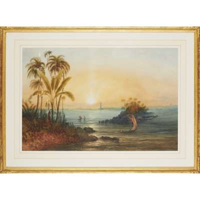 Note: Andrew Nicholl was from Belfast and established a local reputation as a landscape painter by his early twenties and became a founding member of the Belfast Association of Artists. In 1832 he exhibited at the Royal Academy and by 1837 he was elected as an Associate Member of the Royal Hibernian Academy. In 1846, Nicholl was appointed as a teacher of landscape painting and drawing at the Colombo Academy in Ceylon, where he remained for three years. There, with the backing of his most significant patron, the Belfast MP and Colonial Secretary James Emmerson Tennent, Nicholl produced a number of views of local scenery and also provided illustrations for Tennent's book Ceylon: An Account of the Island - Physical, Historical and Topographical, published in 1860. It is thought that he returned from Ceylon by 1849, as he exhibited some views of the island at the Royal Academy that year. He divided his time between London and Belfast, and exhibited at both the Royal Academy and Royal Hibernian Academy. In 1870 he offered twelve watercolours of views of Ceylon to Queen Victoria, who bought two of them.