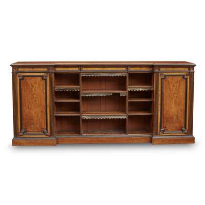 WILLIAM IV WALNUT AND EBONISED LOW BREAKFRONT BOOKCASE