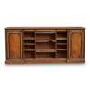 of inverted breakfront outline, with five frieze drawers above open shelves flanked by moulded panel doors with carved rosettes at the corners, on a plinth base