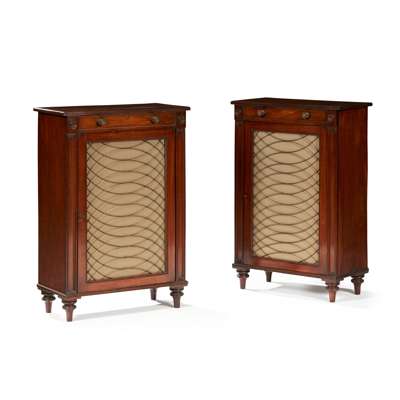 PAIR OF REGENCY MAHOGANY AND BRASS SMALL SIDE CABINETS