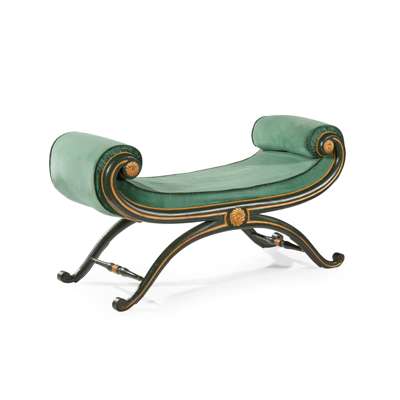REGENCY 'GRECIAN' PAINTED AND PARCEL GILT WINDOW SEAT