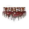 comprising twelve side chairs, with bar backs above stuff-over seats covered in red faux leather, raised on turned and reeded tapered legs