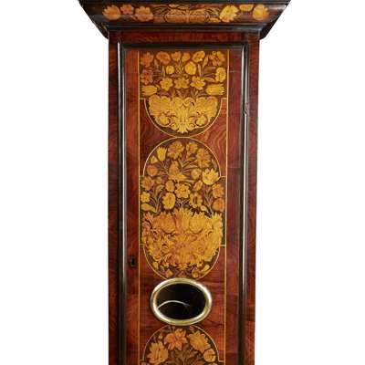 John Smith, author of Old Scottish Clockmakers from 1453 to1850, states "In view of the long time he was in business, - thirty-five years - it is remarkable how exceedingly scarce are specimens of his art, only three have come under our notice: one being the splendid clock in the lobby of the advocates library, another that was exposed for sale in the window of a dealer in Queen Street Edinburgh, both these two having cases of beautiful and chaste marquetry; and the third one in possession of a private party in Linlithgow". Another marquetry longcase clock by Broun dating to the late 17th century sold in these rooms, 1 September, 2021, lot 18.