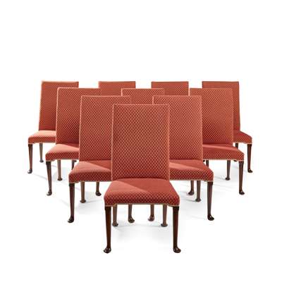 SET OF TEN GEORGIAN STYLE UPHOLSTERED MAHOGANY DINING CHAIRS