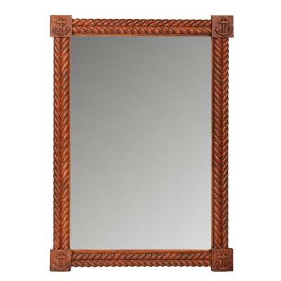 the rectangular mirror plate in a frame with carved simulated rope borders marked at the corners with anchors