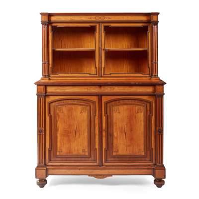 VICTORIAN SATINWOOD, MAHOGANY AND INLAY SIDE CABINET, POSSIBLY LAMB OF MANCHESTER