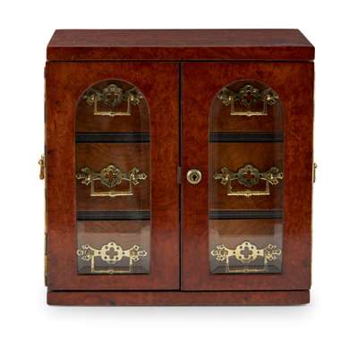 VICTORIAN BURR WALNUT, EBONISED AND BRASS MOUNTED HUMIDOR