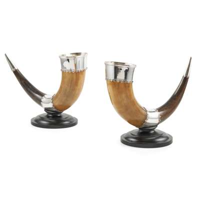 PAIR OF SILVER-PLATE MOUNTED HORN CUPS