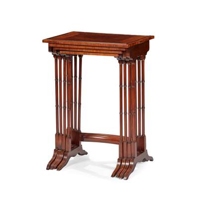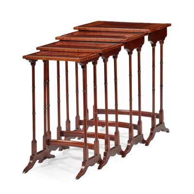 SET OF MAHOGANY AND KINGWOOD CROSSBANDED QUARTETTO TABLES
