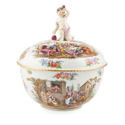 BERLIN PORCELAIN LARGE COVERED PUNCH BOWL