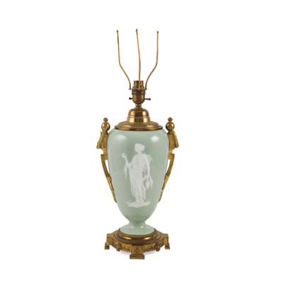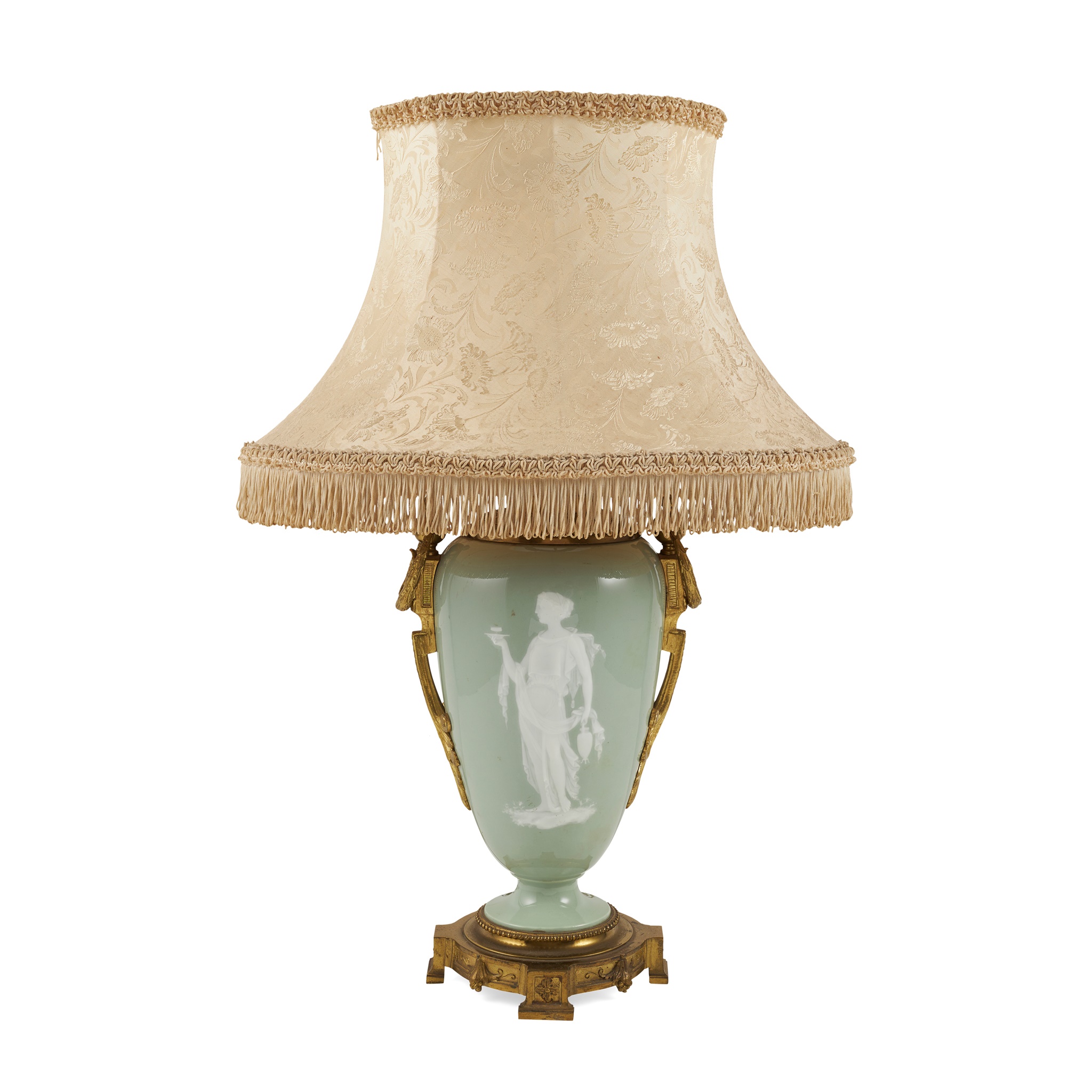 FRENCH GILT METAL MOUNTED PÂTE-SUR-PÂTE TABLE LAMP
