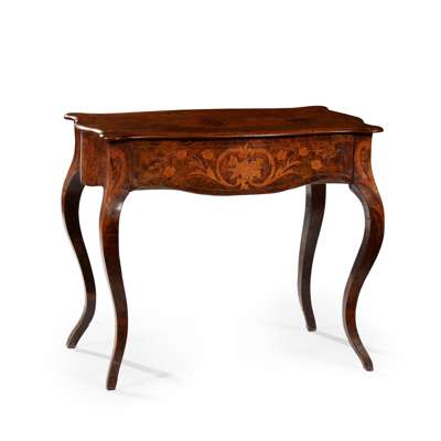 DUTCH WALNUT, FRUITWOOD MARQUETRY AND PENWORK TABLE