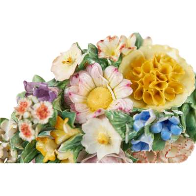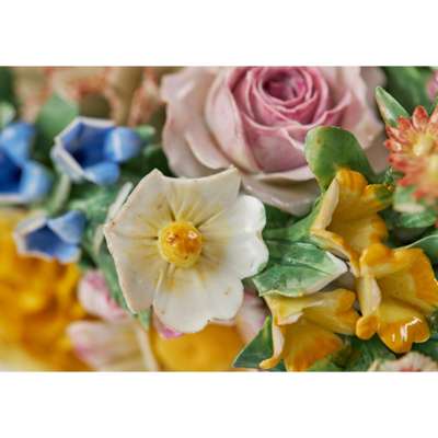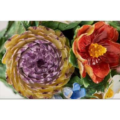 hung with a pendant floral bouquet, blue crossed swords