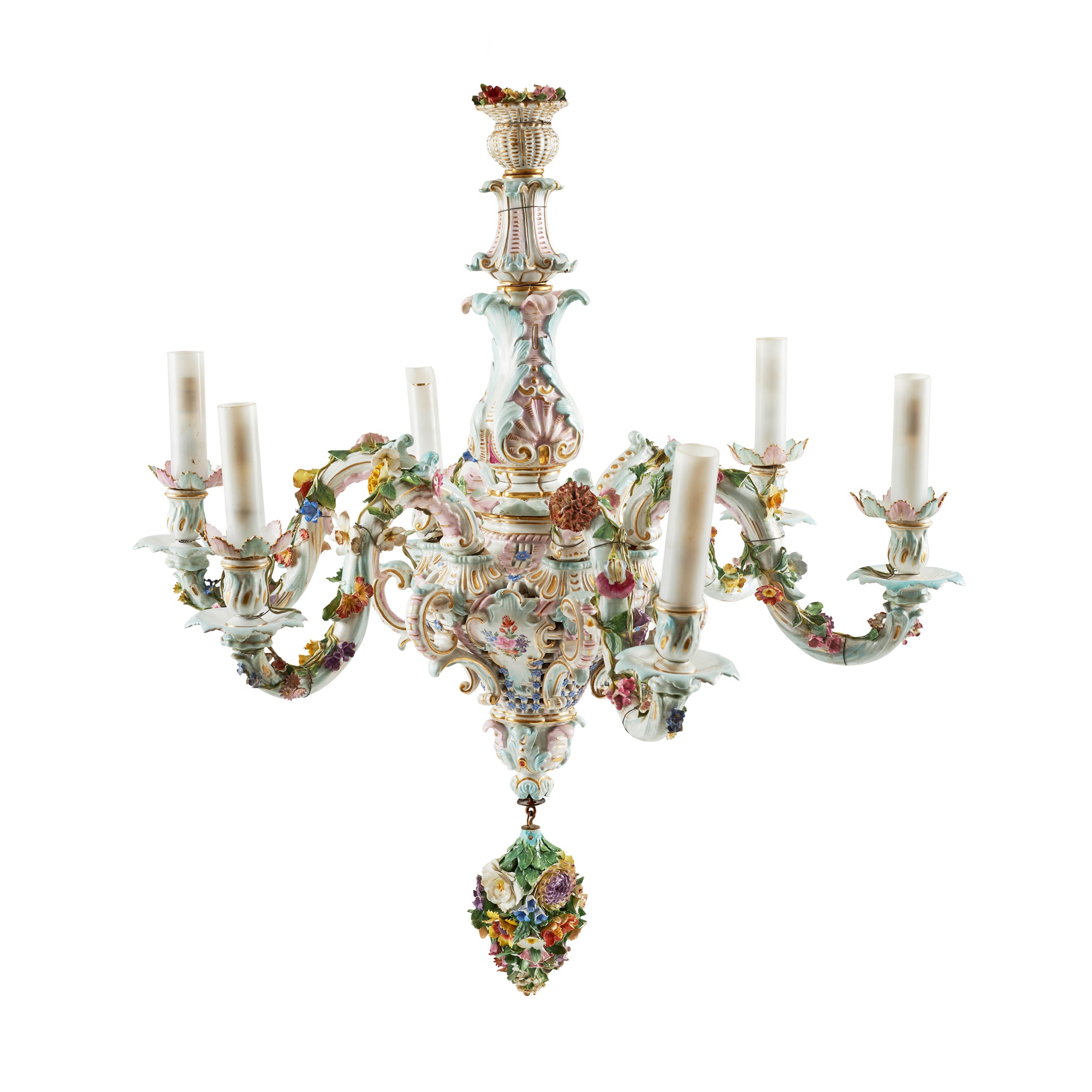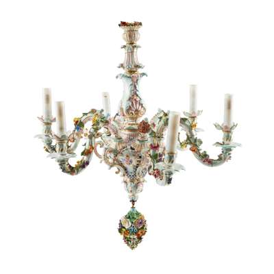 MEISSEN PORCELAIN FLORAL ENCRUSTED SIX BRANCH CHANDELIER