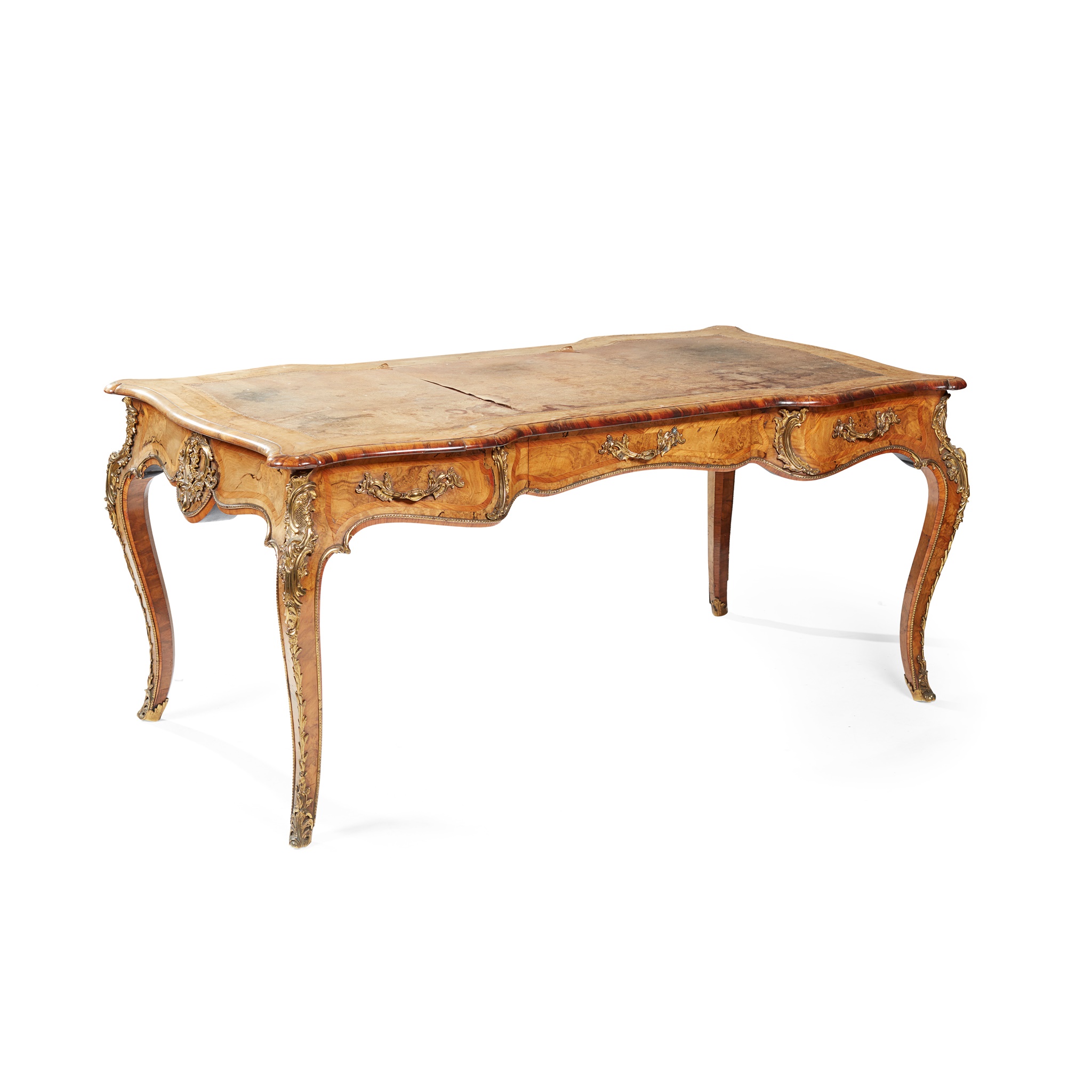 LOUIS XV STYLE KINGWOOD, WALNUT AND BURRWOOD GILT METAL MOUNTED BUREAU PLAT