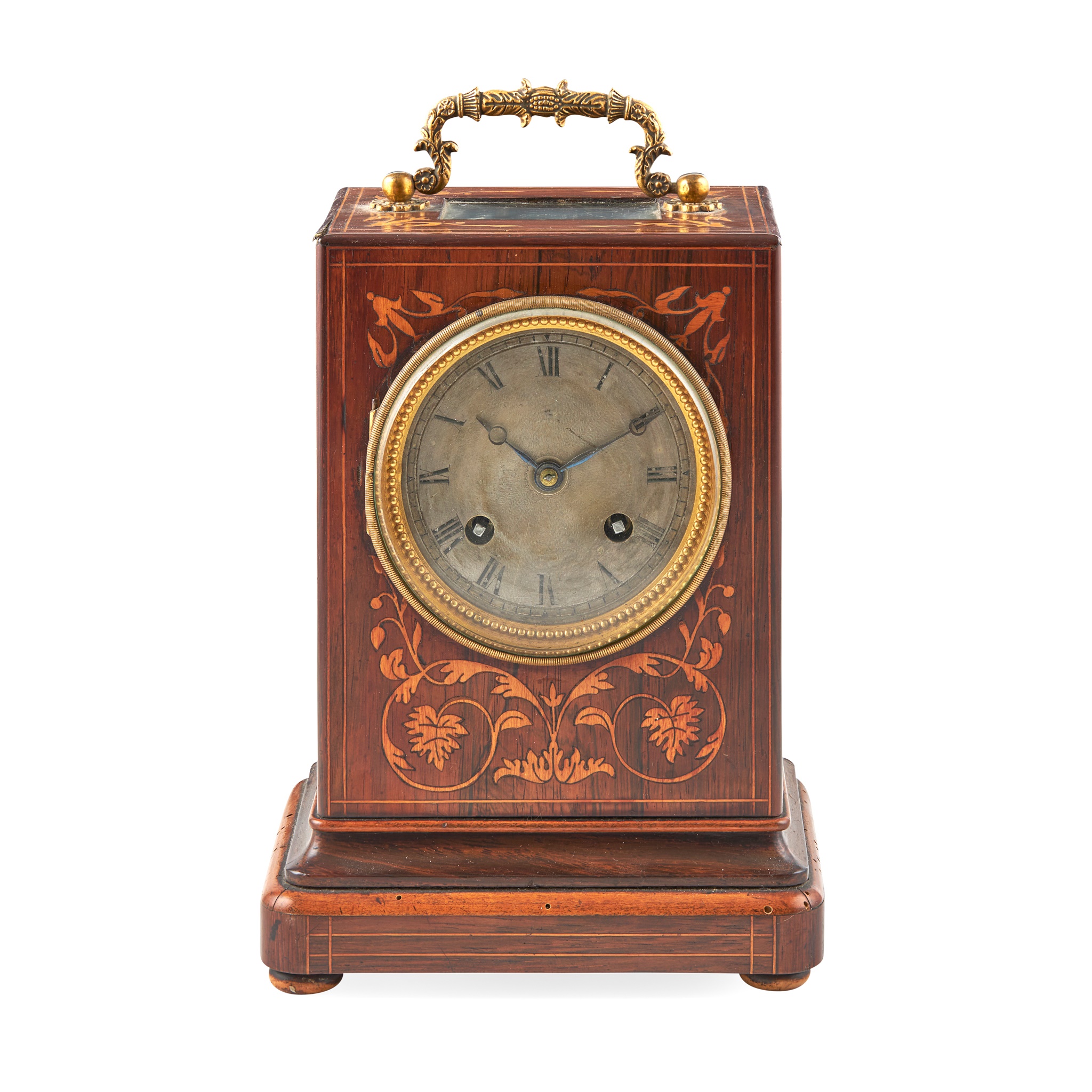 FRENCH ROSEWOOD AND FLORAL MARQUETRY BRACKET CLOCK, B. PROMOLI, PARIS Y